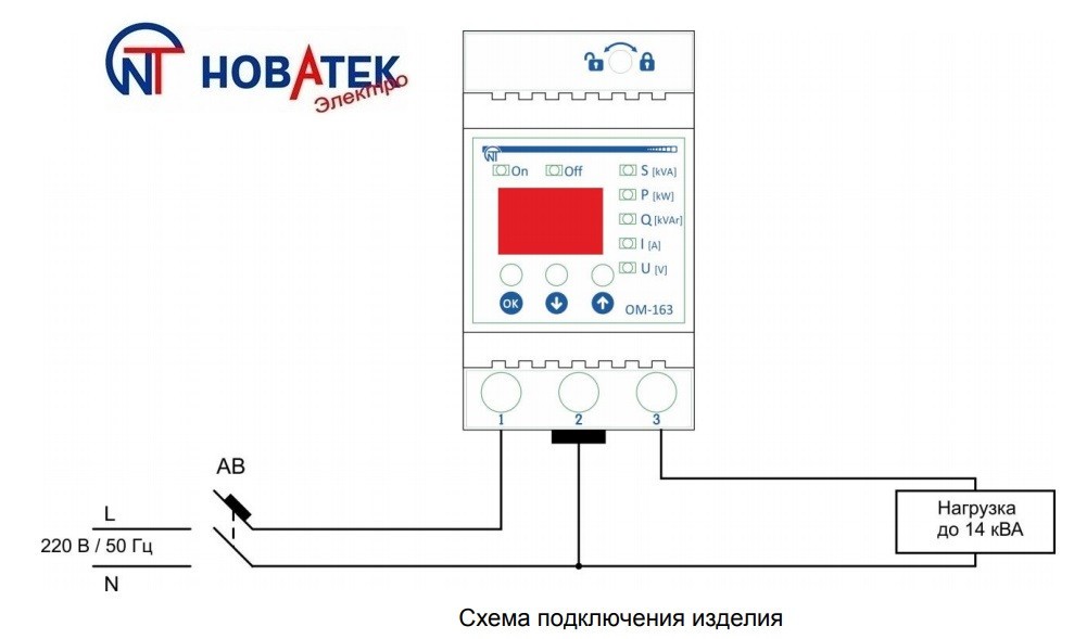 Реле ограничения мощности ОМ-163 однофазное 63 А "Новатек-Электро" Украина