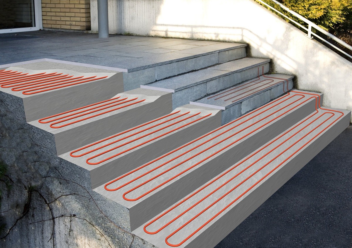 Для обогрева открытых площадей рекомендуется укладывать шагом 7.5 см (10 см при наличии теплоизолятора). Для более быстрого нагрева рекомендуется укладывать как можно ближе к поверхности. При укладки в стяжку на улице необходимо добавлять пластификатор.