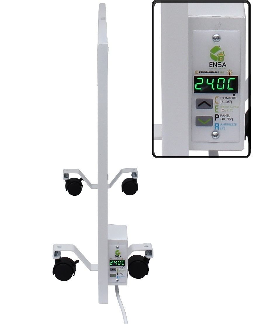 Настенная тепловая панель ENSA P500Е со встроенным программируемым терморегулятором представляет собой универсальный обогреватель для любого типа помещений (жилого и не жилого) с возможностью монтажа на стену или с использованием подставок (ножек). С ENSA P500Е появилась возможность автоматизировать систему отопления в квартире/доме, а также снизить электропотребление до 10%.