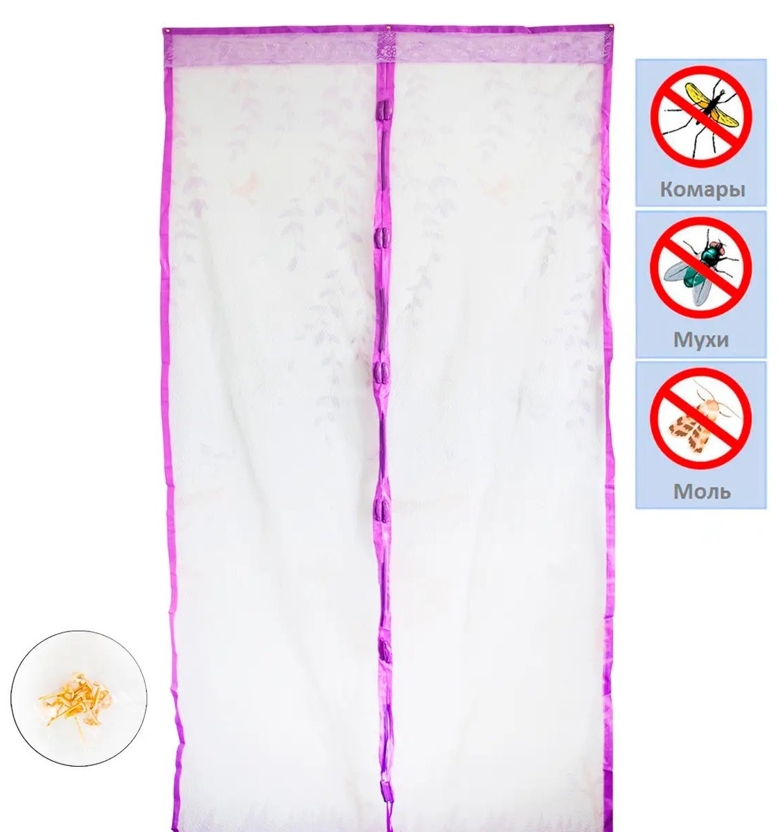 Антимоскітна штора на двері на магнітах Фіолетова з малюнком 208х98см