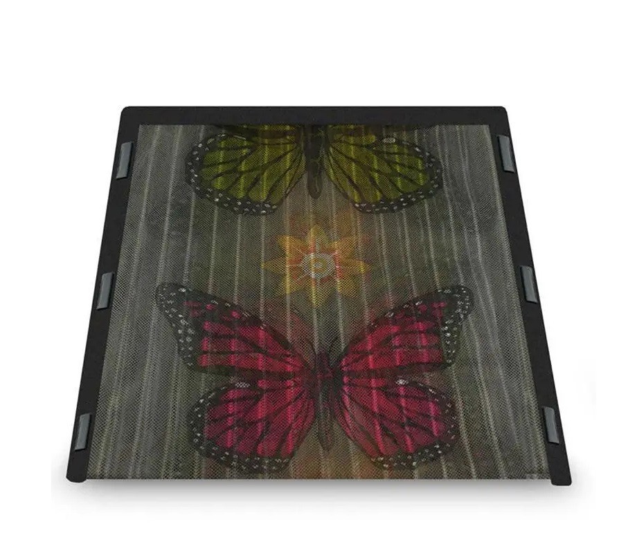 Москітна сітка має малюнок у формі метеликів і обладнана 1848 магнітами, за допомогою яких надійно фіксуються обидві половини сітки, перешкоджаючи проникненню комах, пуху та пилу. Світлопроникна структура сітки, дає змогу денному світлу та повітрю проникати в дім.