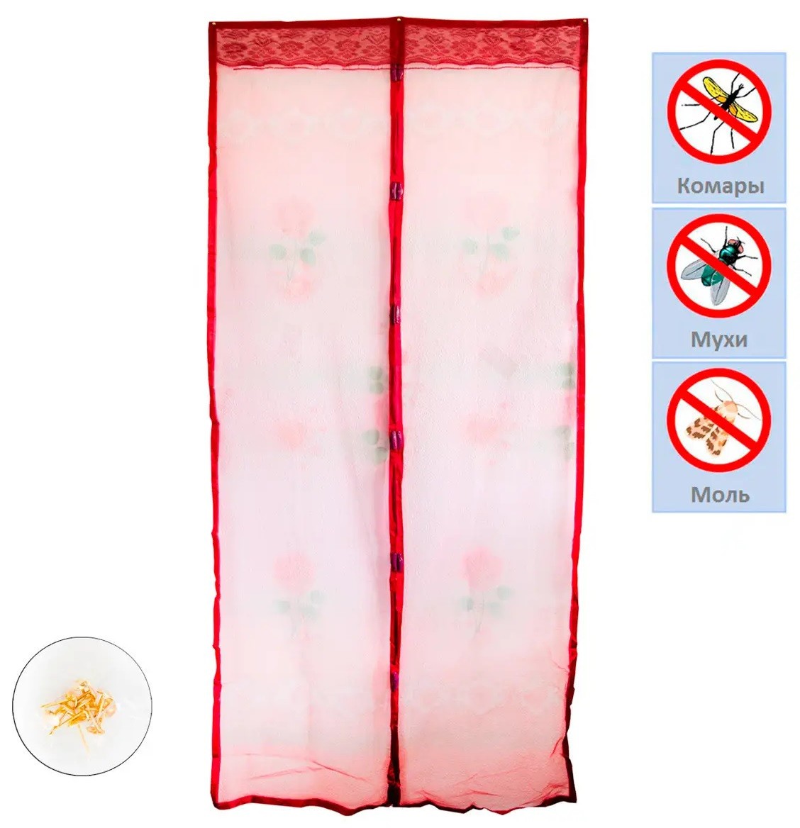 Антимоскітна штора на двері на магнітах Червона з малюнком 208х98см
