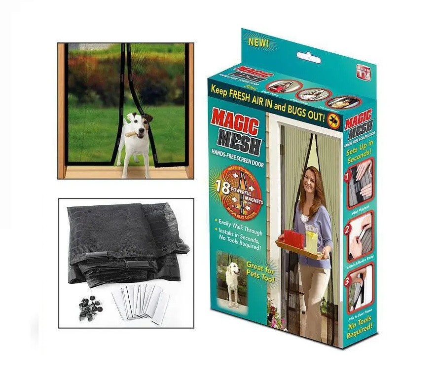 Москітна сітка на магнітах Magic Mesh має низку кардинальних відмінностей від своїх попередників, хоча має такий самий вигляд, як і звичайні нейлонові мережі. Її особливістю є унікальна конструкція, завдяки якій сітка автоматично закривається відразу ж після того, як ви через неї пройдете. Така дія забезпечується м'якими поздовжніми магнітами, розташованими по всій довжині виробу, сила тяжіння яких забезпечує негайне змикання стулок відразу ж після роз'єднання. Москітна сітка магнітна не буде перешкоджувати вашому руху. Під час вашого руху стулки виробу м'яко розкриються, а потім відразу ж щільно звужиться за вашою спиною. Завдяки наявності внизу кожної стулки спеціальних невеликих тягарців, їхні полотна залишаються статичними та не розмикаються доти, поки через них не пройде людина.