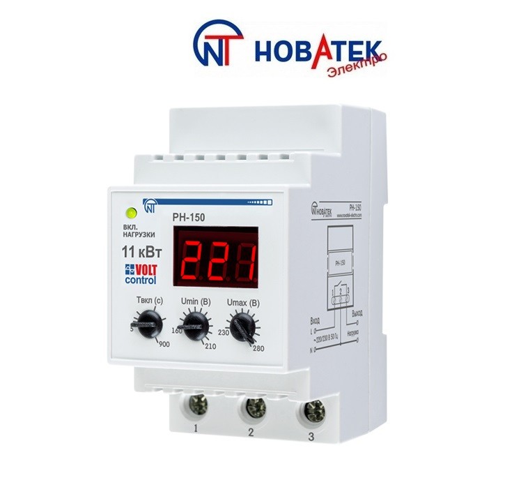 Однофазне реле контролю напруги РН-150 (50 А, Volt Control) "Новатек-Електро" (Україна)