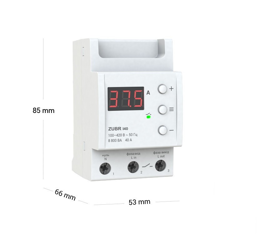 Технічні дані реле контролю струму ZUBR I40 DS Electronics