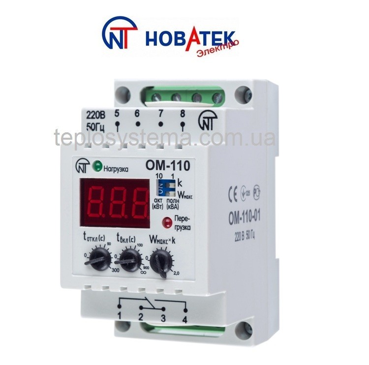 Технічні дані реле обмеження потужності ОМ-110-01 ("Новатек-Електро" Україна) однофазне