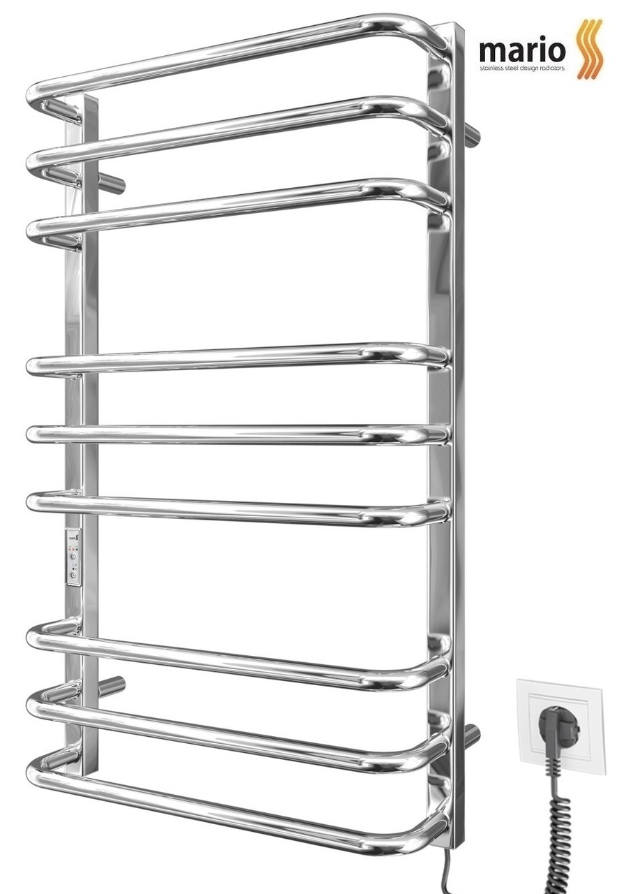 Електрична рушникосушарка MARIO Преміум Стандарт- I 800 x 500 TR таймер-регулятор виготовлений у само популярним кольорі — "дзеркальна нержавіюча сталь" — він завжди є в наявності. Варіанти покриття: полірована або сатин, чорний мат, білий глянець, золото, бронза. Вартість рушникосушарки в обраному Вами кольорі та термін постачання поточніть у менеджера по телефону або вкажіть колір під час оформлення замовлення.
