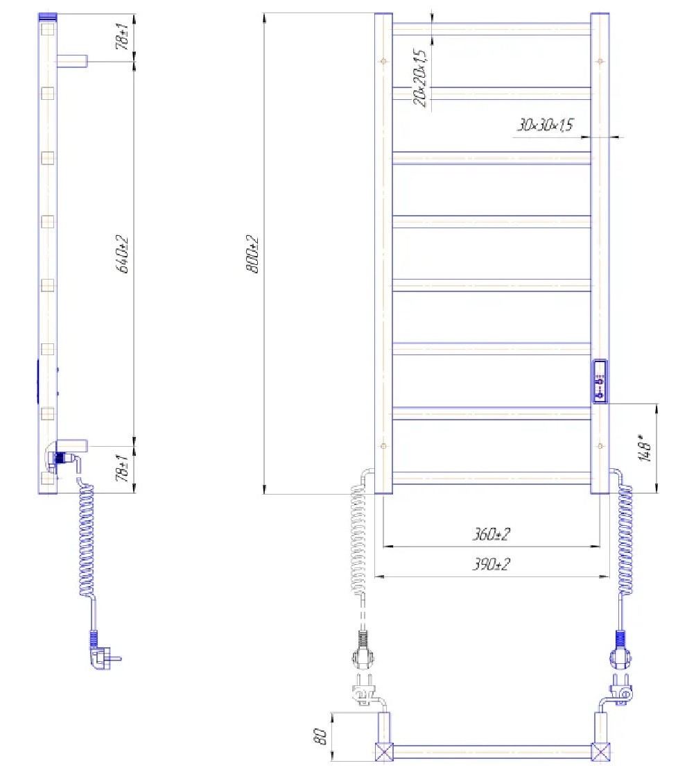 Електрична рушникосушарка Токіо-I 800x400 TR К таймер-регулятор