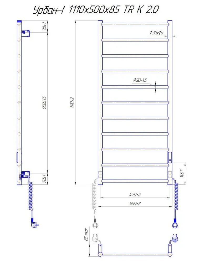 ТЕХНІЧНІ ХАРАКТЕРИСТИКИ рушникосушарки MARIO Урбан-I 1110 x 500 TR 2.0 (електричний)