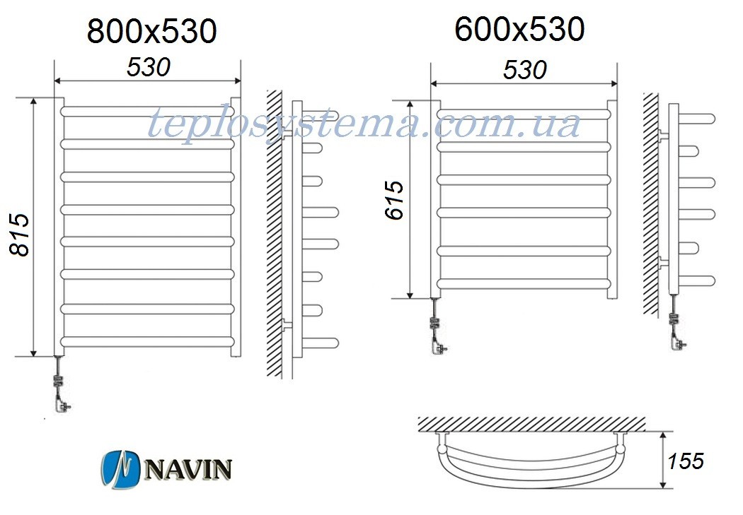 Сушарка для рушників Омега (Navin) — електрична сушарка для рушників у формі драбинки, з класичним строгим дизайном. Поперечні труби розташовані в різних площинах. Під'єднання сушарки для рушників до електромережі  може бути ліве або праве. На момент замовлення сушарки для рушників вкажіть яке потрібне під'єднання шнура — зліва чи справа. И  Вам не потрібно спеціально підводити проводину, для  під'єднання сушарки для рушників.