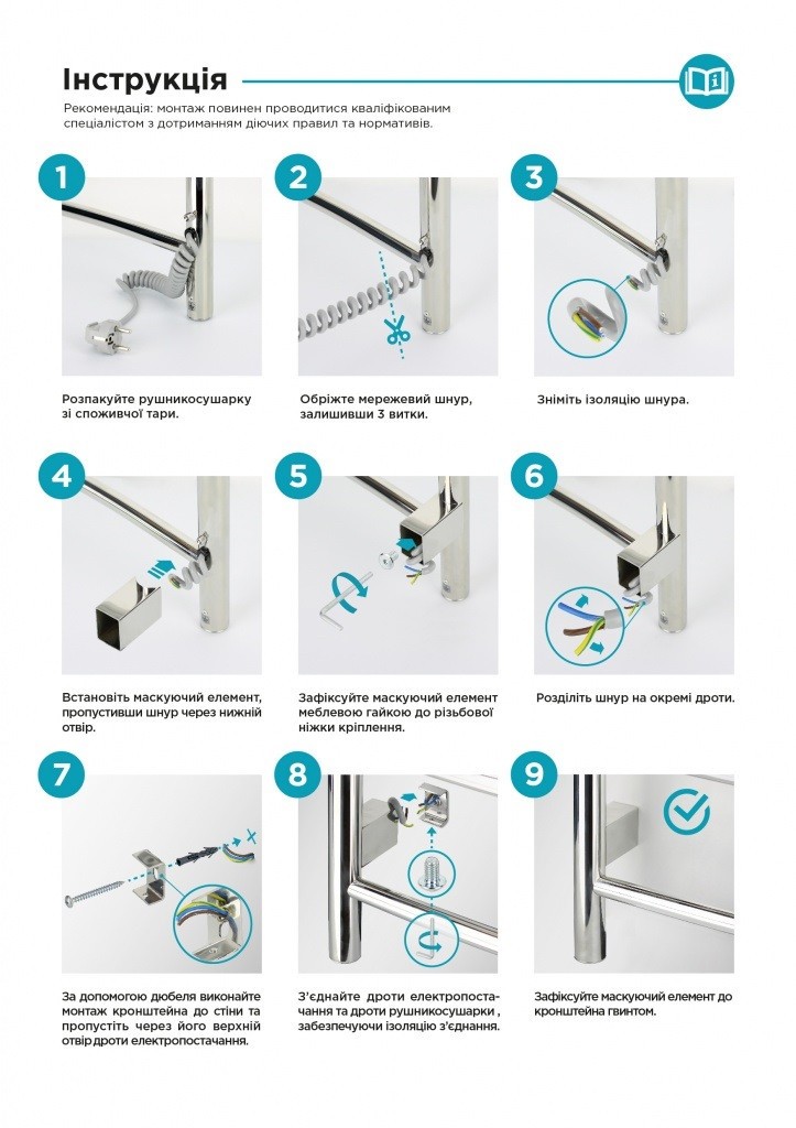 Комплект прихованого під'єднання електричних сушарок для рушників Маріо. Два варіанти: приховане під'єднання для круглого стояка сушарки для рушників і для профільного. Дає змогу швидко та просто зробити монтаж електричної сушарки для рушників, відкрити інструкцію зі встановлення.