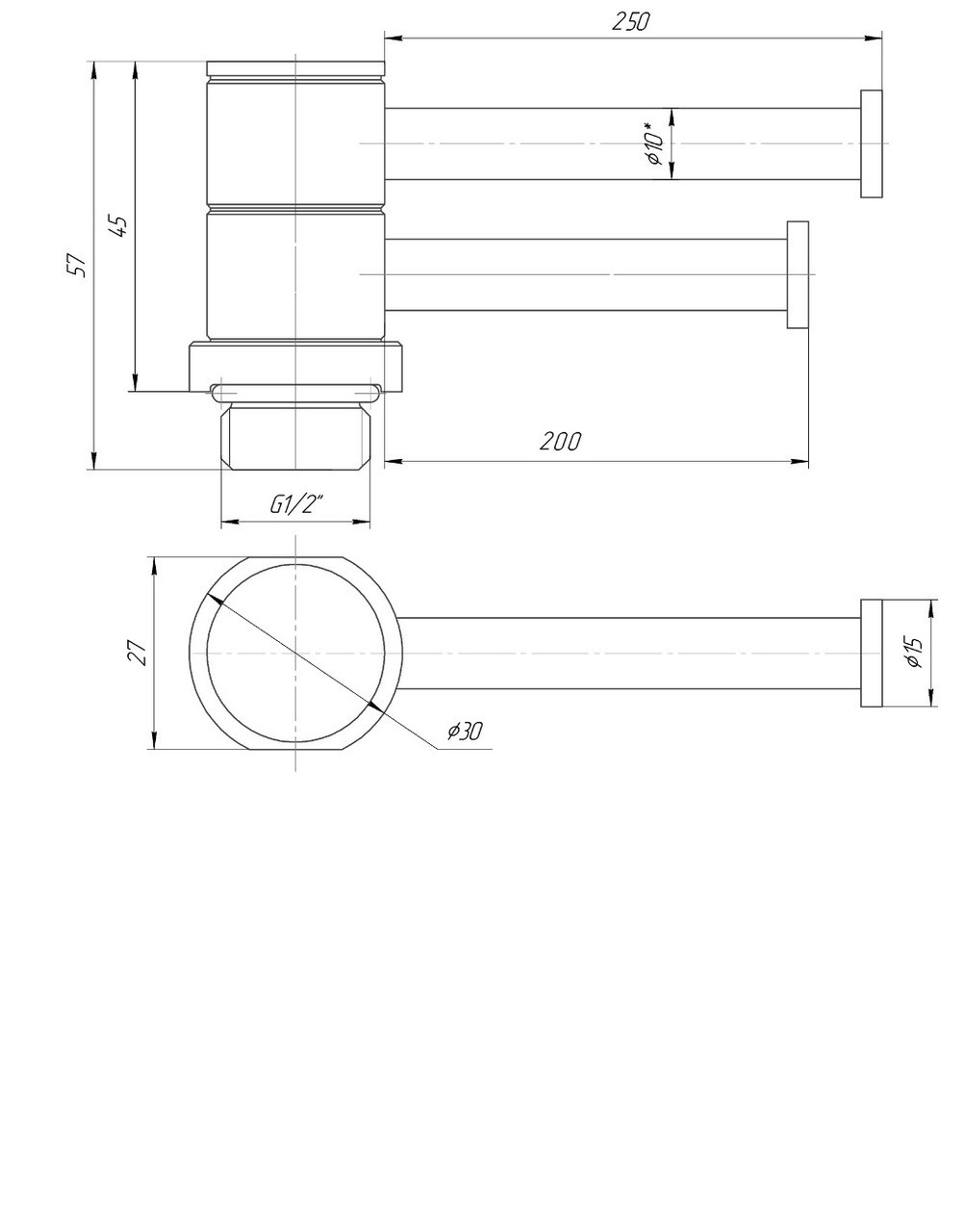 Пілочка поворотна додасть функціональності вашому сушарку для рушників. Має дві перекладини завдовжки 5 см і 7 см, встановлюється на вертикальну трубу — діаметр під'єднання  G 1/2".