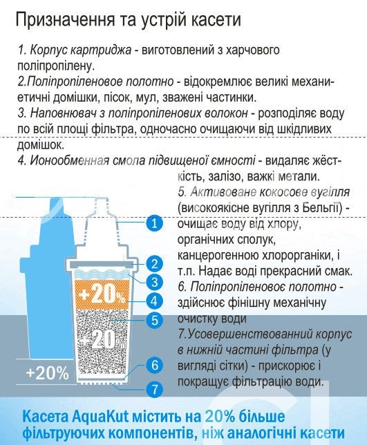 До комплекту глечика входить картридж під назвою АкваКут Б-4.