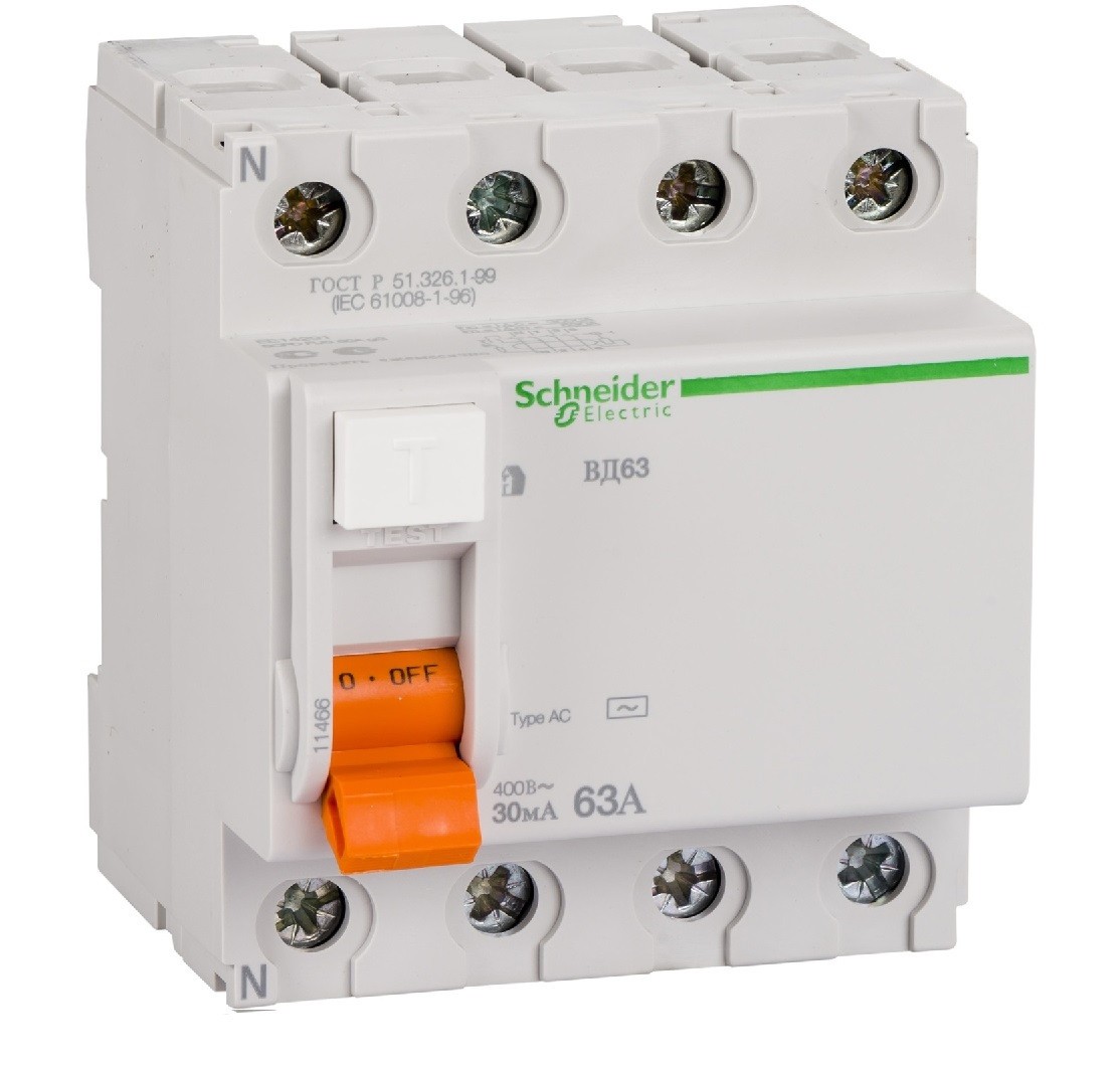 Диференціальні вимикачі (ПЗВ) Schneider Electric ВД 63 серії "Домовий".(УЗВ — пристрої захисного вимкнення).
