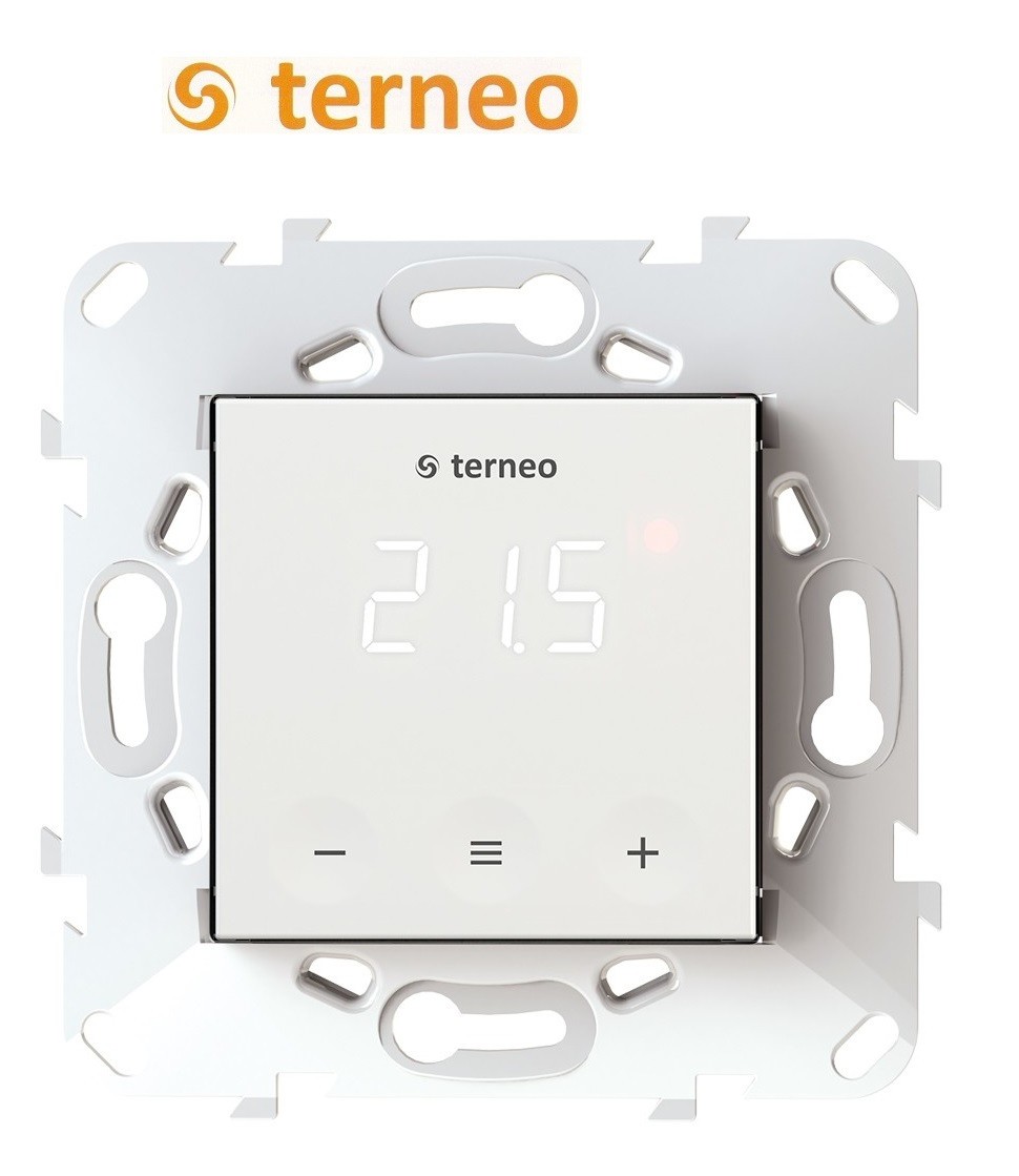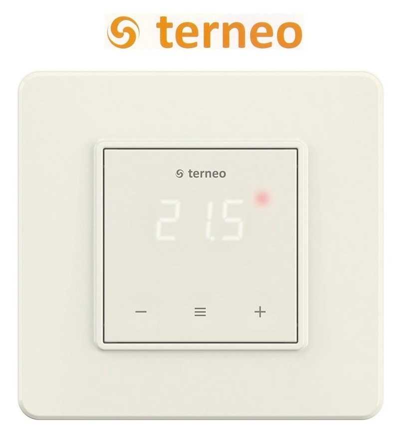 Електронний терморегулятор для теплої підлоги TERNEO S — поліпшена модель цифрового терморегулятора для теплої підлоги із сенсорним керуванням і з можливістю спільного монтажу з іншою фурнітурою. Увімкнення і вимикання здійснюється за допомогою правої кнопки, а регулювання температури кнопками "+" і "-" — це дає змогу зафіксувати температуру підлоги в потрібному вам діапазоні.