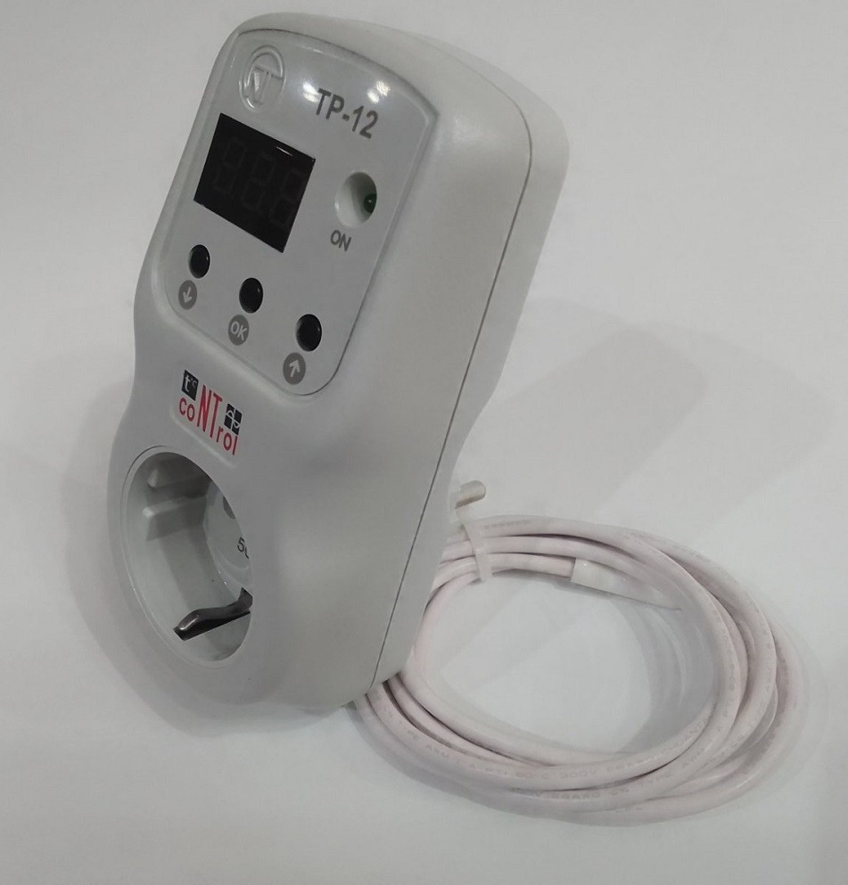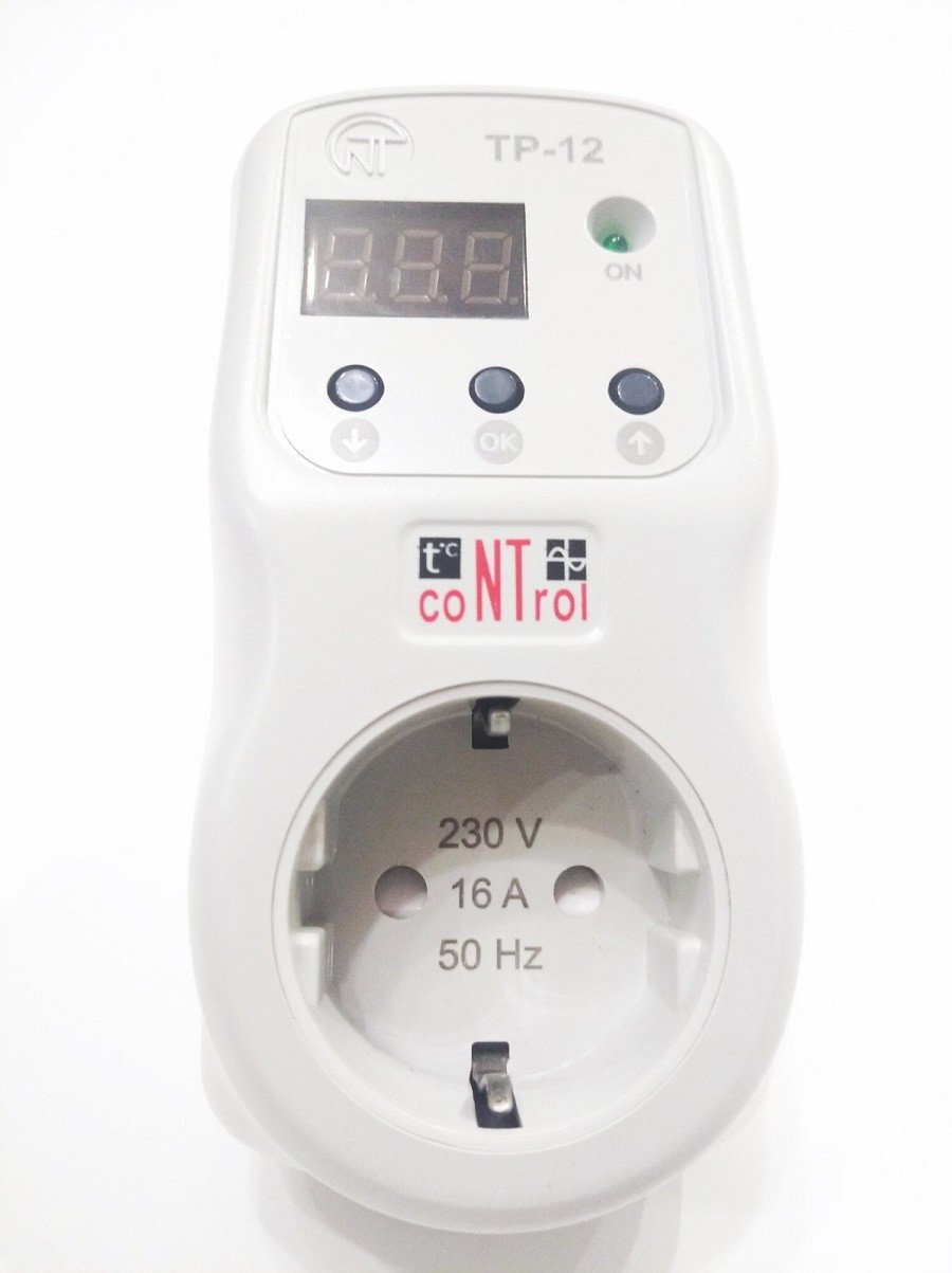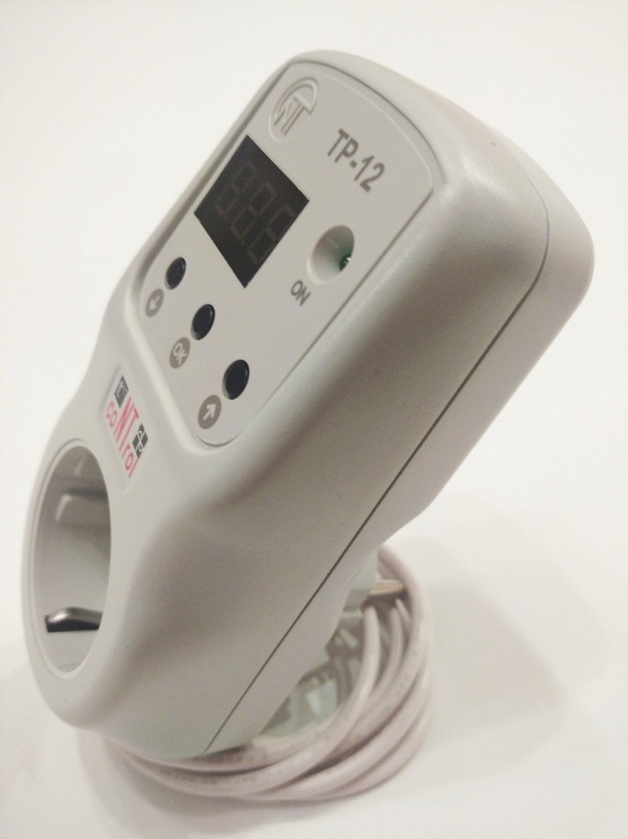 Терморегулятор ТР - 12 володіє функціями реле напруги, захищаючи підключені електроприлади від неприпустимих рівнів напруги, а також витримкою заданого користувачем часу АПВ перед включенням навантаження. Терморегулятор ТР - 12 підтримує задану температуру в приміщенні, включаючи/відключаючи електроприлади, при цьому на дисплеї відображається значення температури, вимірюване датчиком температури повітря. Вилка терморегулятора ТР - 12 просто включається в стандартну розетку із заземленням.