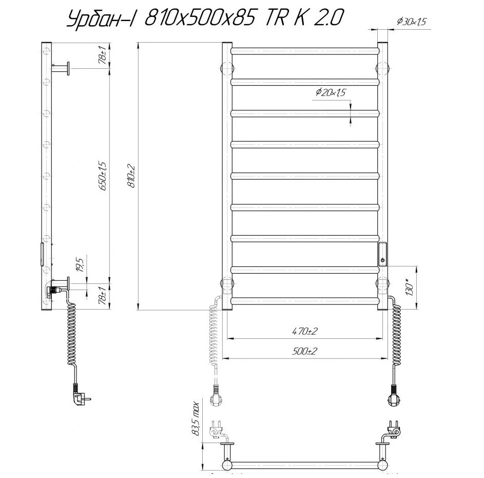 Рушникосушарка Урбан-I 810 x 500 TR 2.0 К таймер-регулятор — електрична рушникосушарка виготовлена з профільної труби з таймер-регулятором 2.0 - перший смарт-блок керування.