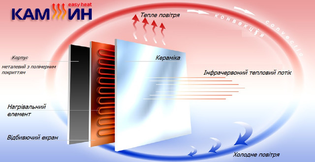 Керамічний інфрачервоний обігрівач КАМІН Easy Heat 400 Вт бежевий – панельний обігрівач монтуємий на стіну. Принцип роботи керамічної теплової панелі КАМІН Easy Heat заснований на одночасному використанні двох видів теплопередачі: