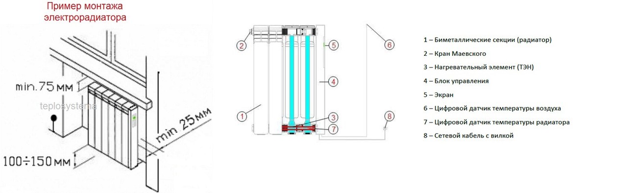 Варіанти встановлення електрордіаторів Оптимакс: