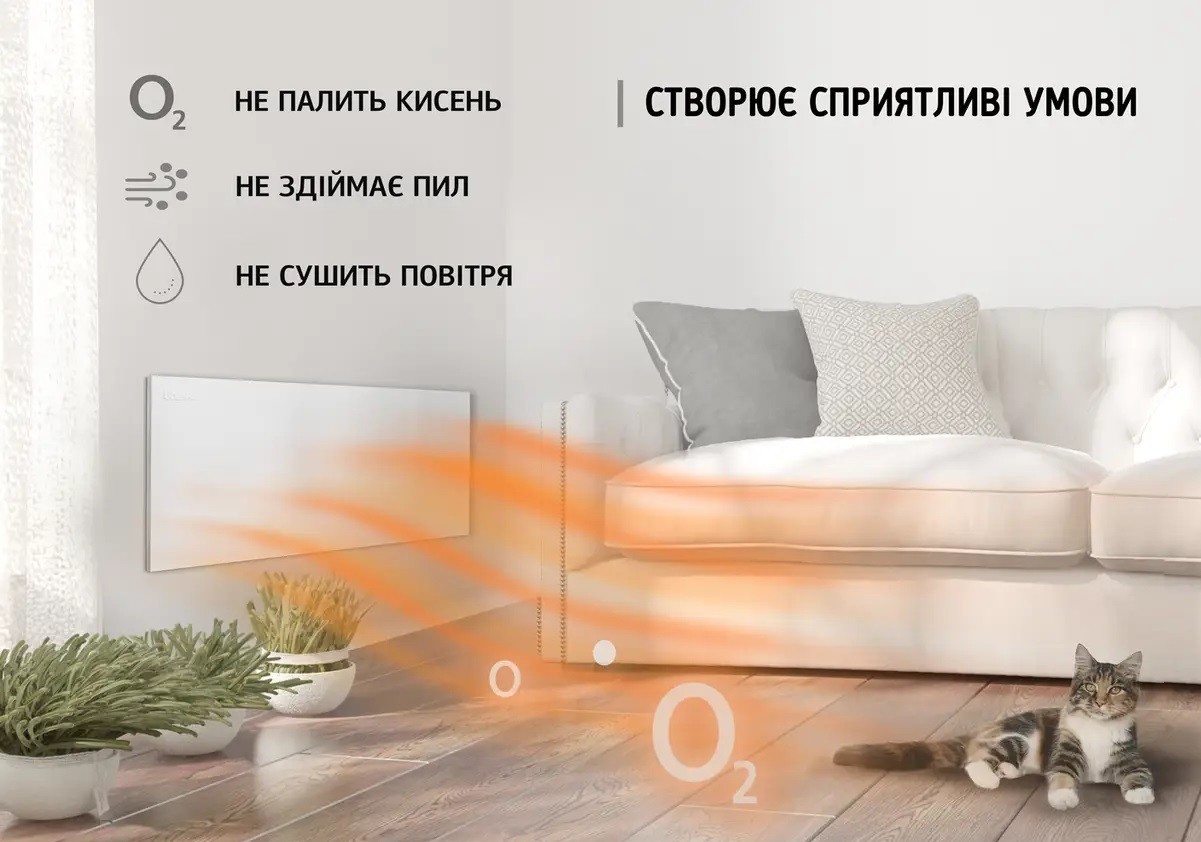 Обігрівачі UDEN-S працюють за принцип прямого нагрівання приміщення, тому немає котлів, котельних, труб, насосів і звичного теплоносія. М'які інфрачервоні довгохвильові теплові промені падають на поверхню стін, підлоги, різних предметів і поступово прогрівають їх. Завдяки взаємному обміну теплом між нагрітими предметами прогрівається й повітря. У таких умовах ми відчуваємо себе набагато комфортнішими, ніж у разі конвекційного опалення, а в оплаті економимо мінімум 35-40%!