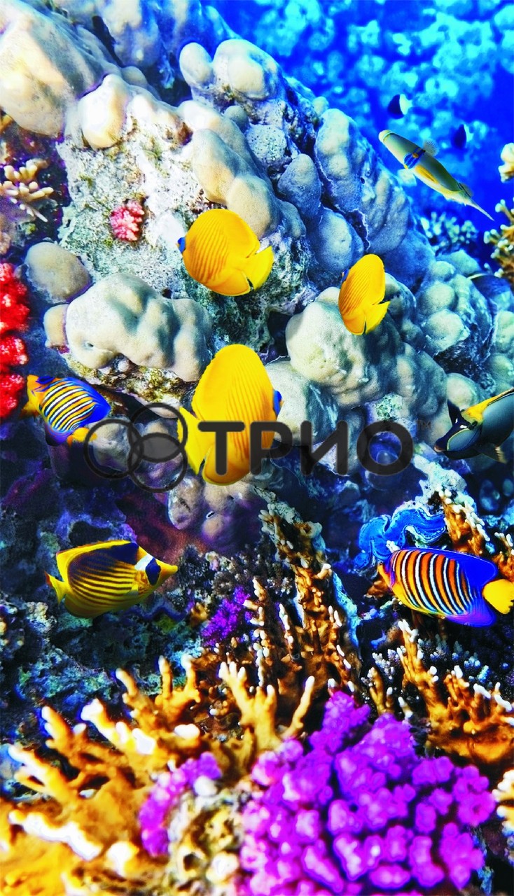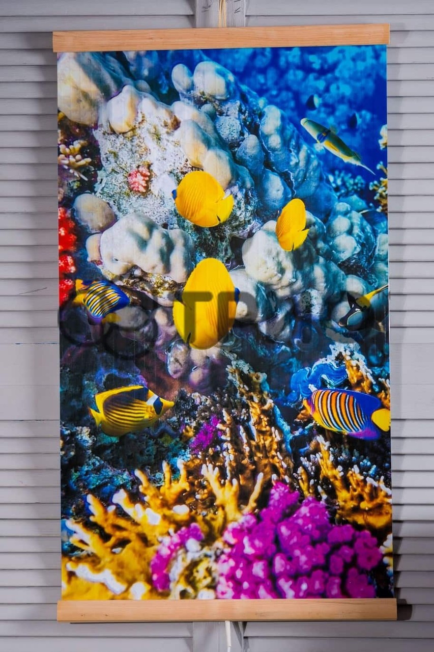 Інфрачервоний настінний плівковий обігрівач (картина) КОРАЛОВИЙ РИФ (рибки) Тріо Україна