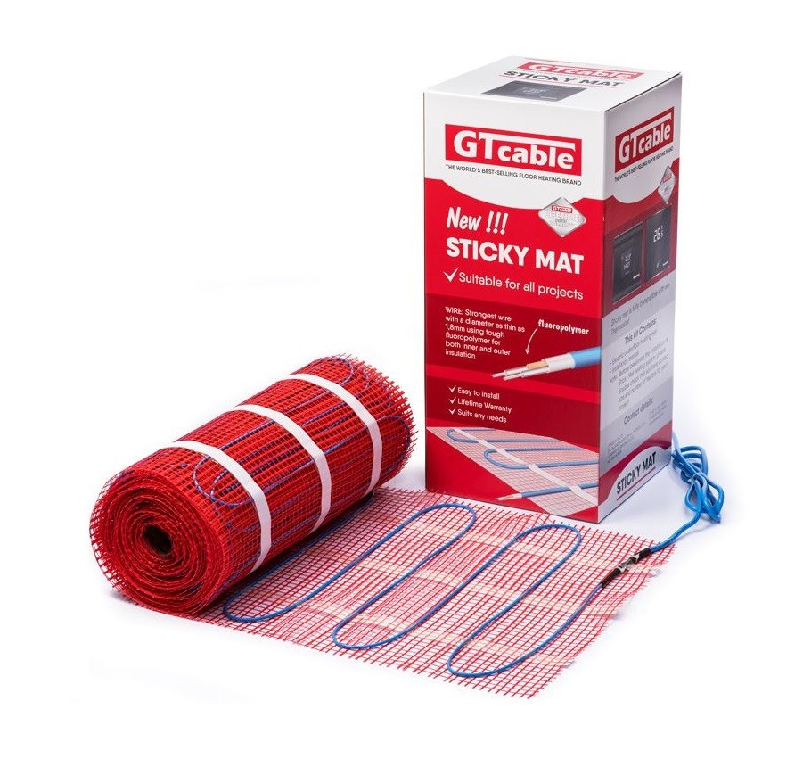 Тонкі грівальні мати GTcable 150 Вт/м2 монтуються на вже зроблене стяжку відразу в шар плиткового клею (товщина нагрівального кабелю 4,0 мм), тому висота підлоги підіймається на висоту статевої плитки. Нагрівальні мати GTcable 150 Вт/м2 забезпечують ідеальну температуру підлоги у вашій квартирі або будинку завдяки швидкому й ефективному розподілу тепла. Мати GTcable 150 Вт/м2 можна використовувати для реставрації старої підлоги — тобто тепла підлога вкладається відразу на стару плитку, а зверху на мат відразу клеїться нова плитка. Водночас у Вас підлога підіймається тільки на висоту нової плитки — це дуже зручно для кімнат із невисокими стелями.