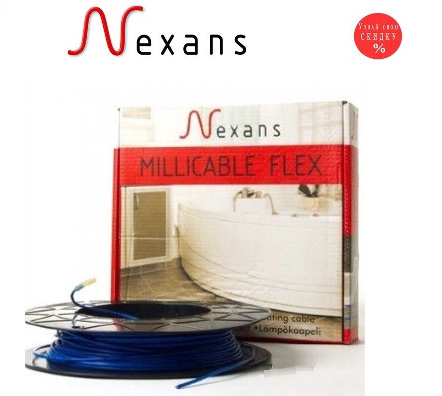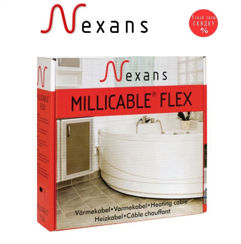 Нагрівальний кабель Nexans Millicable Flex 15 (15Вт/м) 525 Вт Норвегія — тонкий кабель з екраном із суцільної алюмінієвої трубки (без сітки з клейкою основою) розроблений і виробляються компанією Nexans в Норвегії для системи теплої підлоги, яка монтують безпосередньо під плитку в клей, водночас висота клею буде мінімальна (5-8 мм), тому що тонкий нагрівальний кабель Nexans Millicable Flex 15 (15Вт/м) обладнаний системою БЕЗМУФТОВОГО З'ЄДНАННЯ). З'єднання грючого кабелю з поживним дротом зроблене так, що сама муфта проходить під захисним екраном і зверху прокладена суцільна тефлонова ізоляція. Такий спосіб з'єднання усуває проблеми, пов'язані зі з'єднанням дротів у муфті звичайним способом і перериванням суцільної ізоляції під термоусадковою трубкою. З'єднання без муфти в місці з'єднання холодного та нагрівального кабелів робить кабель абсолютно водонепроникним і ідеальним для використання у вологих приміщеннях.
