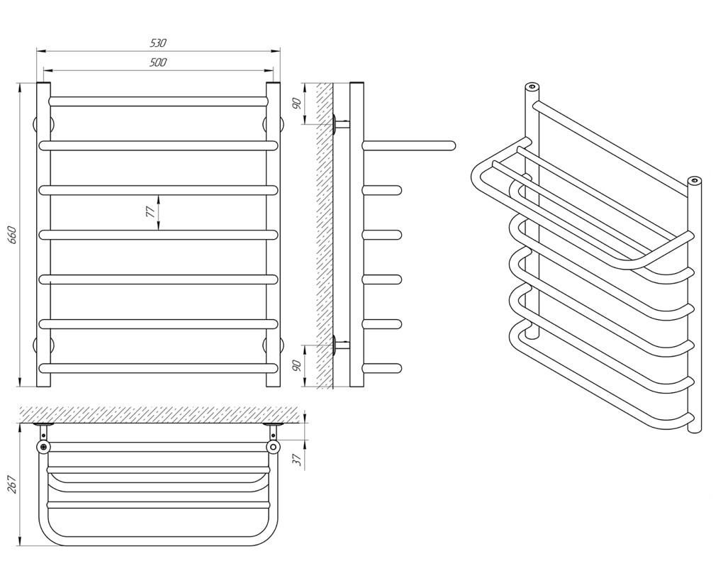 ТЕХНІЧНІ ХАРАКТЕРИСТИКИ рушникосушарки LARIS Стандарт П7  500 х 660 з полицею