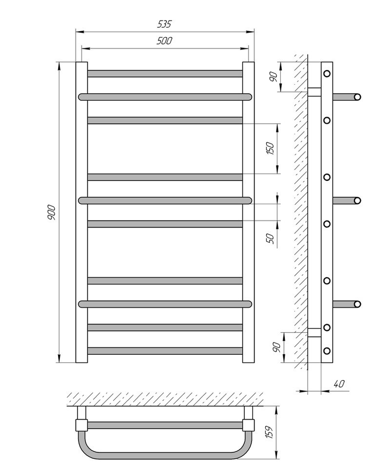 ТЕХНІЧНІ ХАРАКТЕРИСТИКИ рушникосушарки Laris Ніка П10 500 х 900 водяний