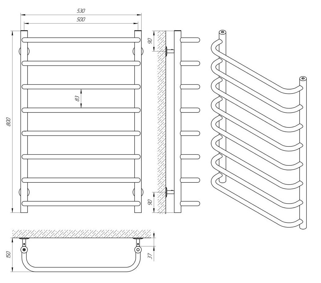 Водяна рушникосушарка LARIS Стандарт П8 500 х 800