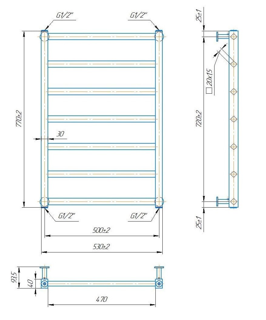 ТЕХНІЧНІ ХАРАКТЕРИСТИКИ рушникосушарки MARIO Кіото 770 х 530/500 (водяний)