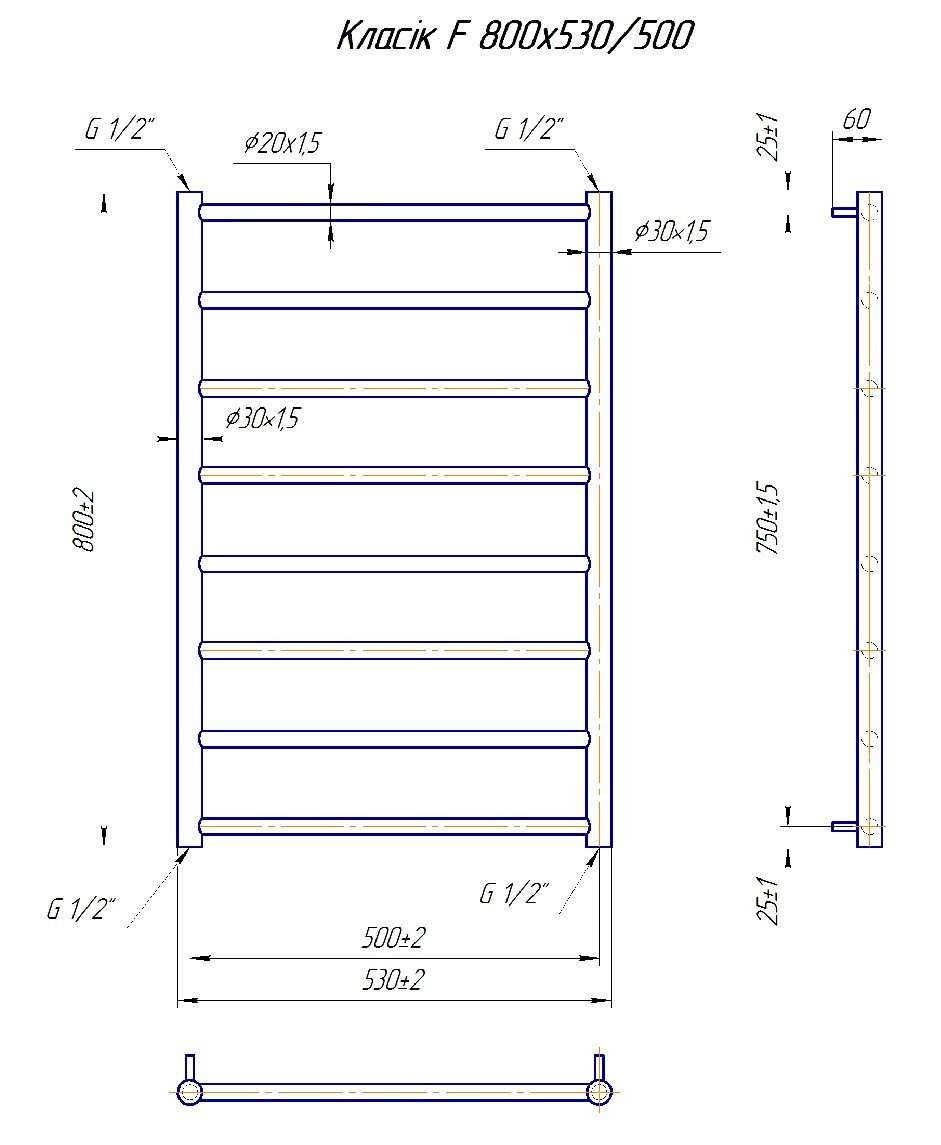 ТЕХНІЧНІ ХАРАКТЕРИСТИКИ рушникосушарки MARIO Класік F 800х530/500