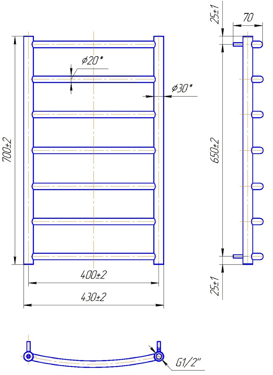ТЕХНІЧНІ ХАРАКТЕРИСТИКИ рушникосушарки MARIO Класік 700 х 430/400 (водяний)