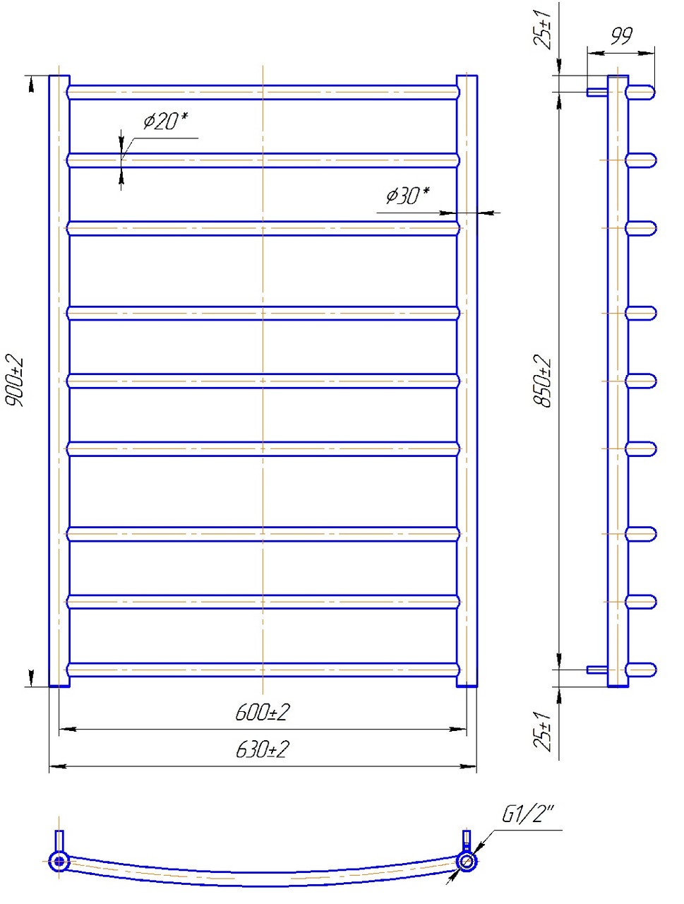 ТЕХНІЧНІ ХАРАКТЕРИСТИКИ рушникосушарки MARIO Класік 900 х 630/600 (водяний)
