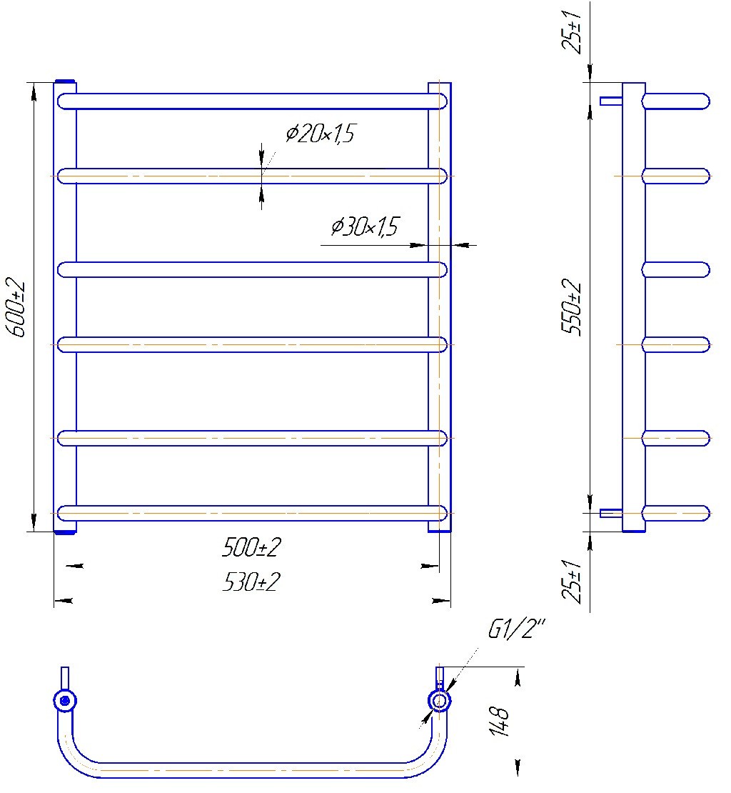 ТЕХНІЧНІ ХАРАКТЕРИСТИКИ рушникосушарки MARIO Стандарт 600/530/500 (водяний)