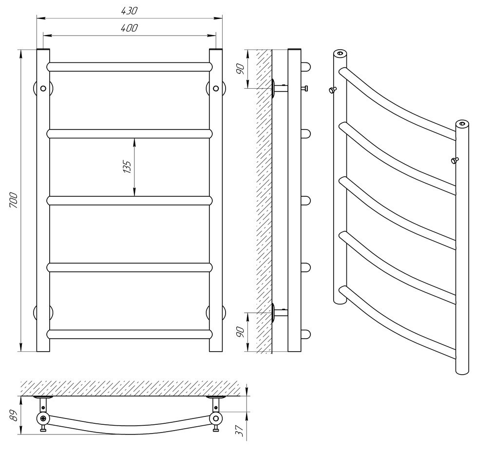 ТЕХНІЧНІ ХАРАКТЕРИСТИКИ рушникосушарки Laris Флеш П5 400 х 700