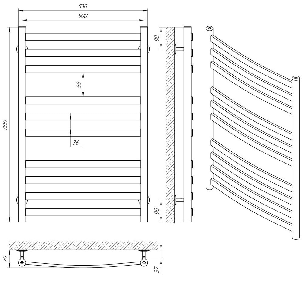 ТЕХНІЧНІ ХАРАКТЕРИСТИКИ рушникосушарки Laris Кватро Класік П10 500 х 800